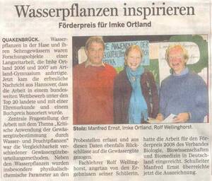 - Imke Ortland erhält Auszeichnung für ihre Arbeit "Kritische Anwendung der Gewässergütebestimmung durch Wasser- und Feuchtpflanzen" (Bersenbrücker Kreisblatt 10.10.2008)